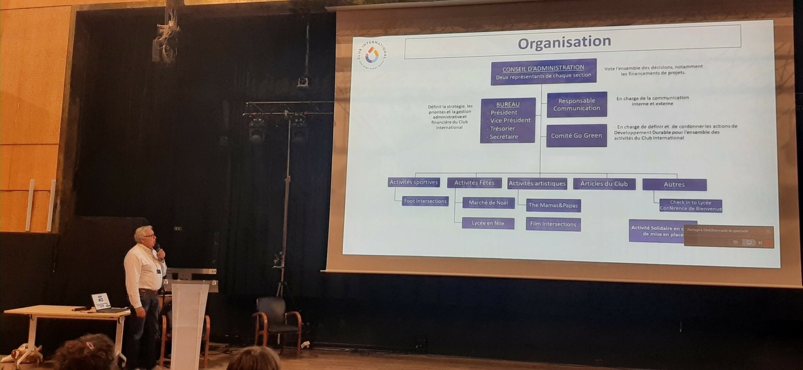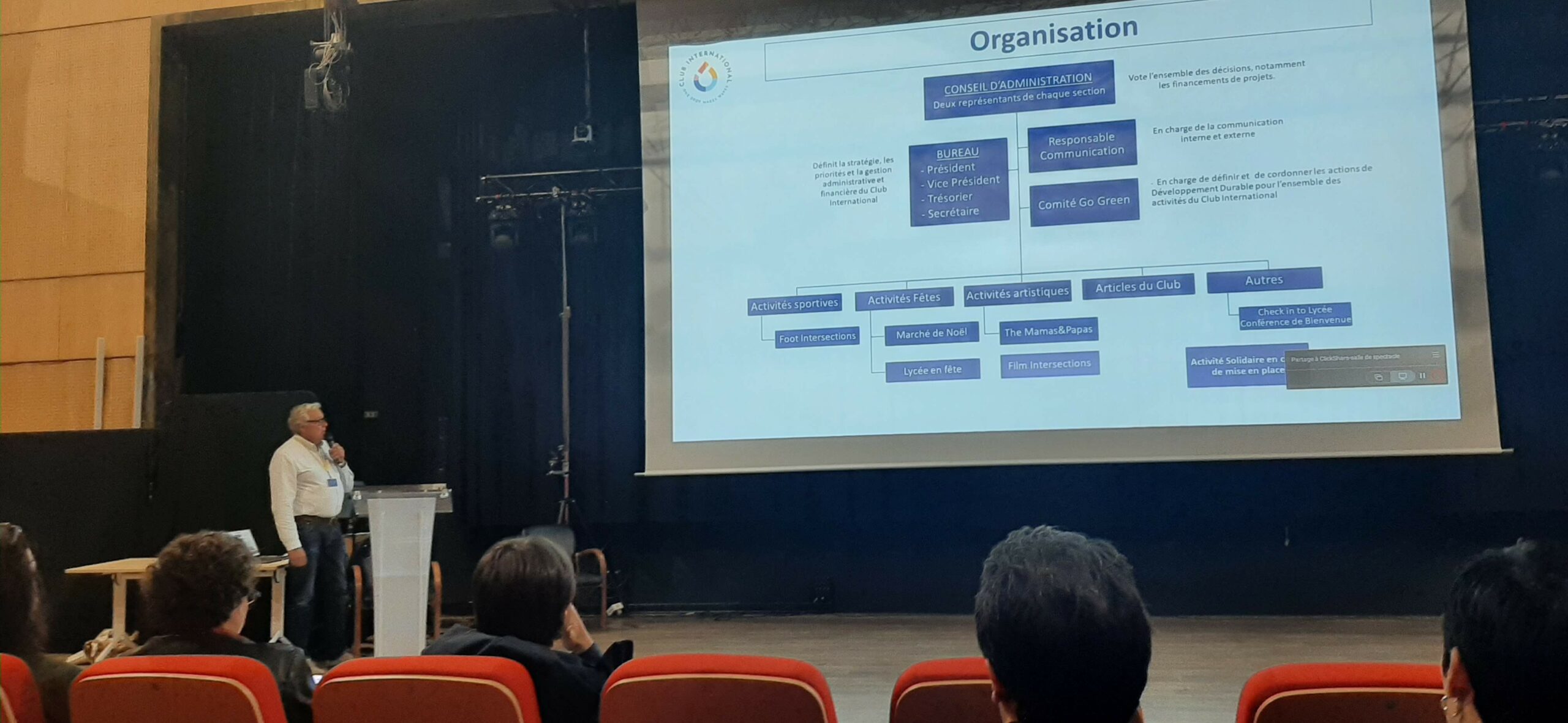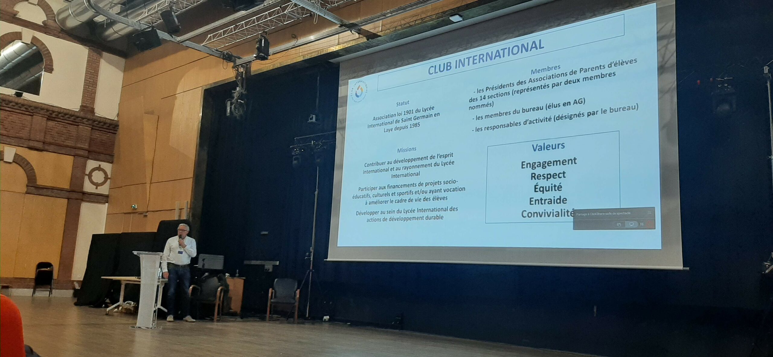 La Conférence et le Cocktail de Bienvenue, organisés le mardi 16 septembre à 18h, fut un véritable moment d’accueil et d’échanges au sein de notre communauté scolaire. Le Proviseur du Lycée International, Monsieur Bonneville, la présidente de l’APELI, Gebsy Villaroel, ainsi que Yannick Aulnette, président du Club International, Mary Diard, Middle School Principal de la section américaine ont animé cette rencontre et présenté de manière claire et chaleureuse le fonctionnement du Lycée, le rôle de l’APELI et les actions menées par le Club International.